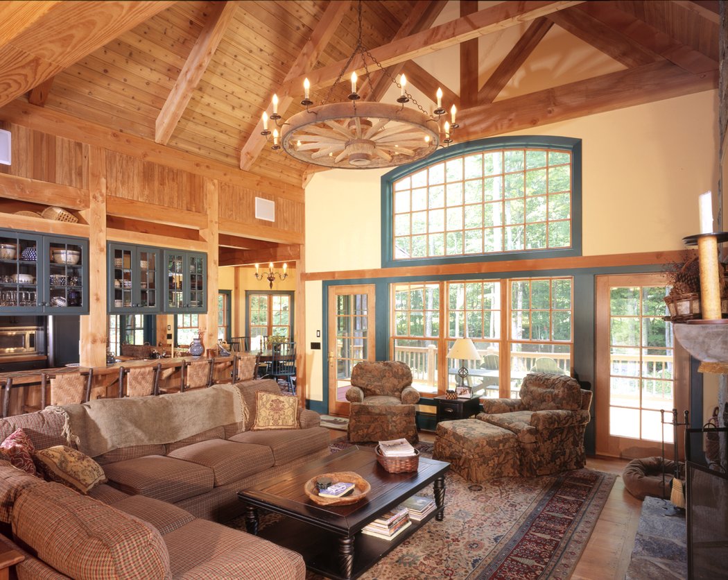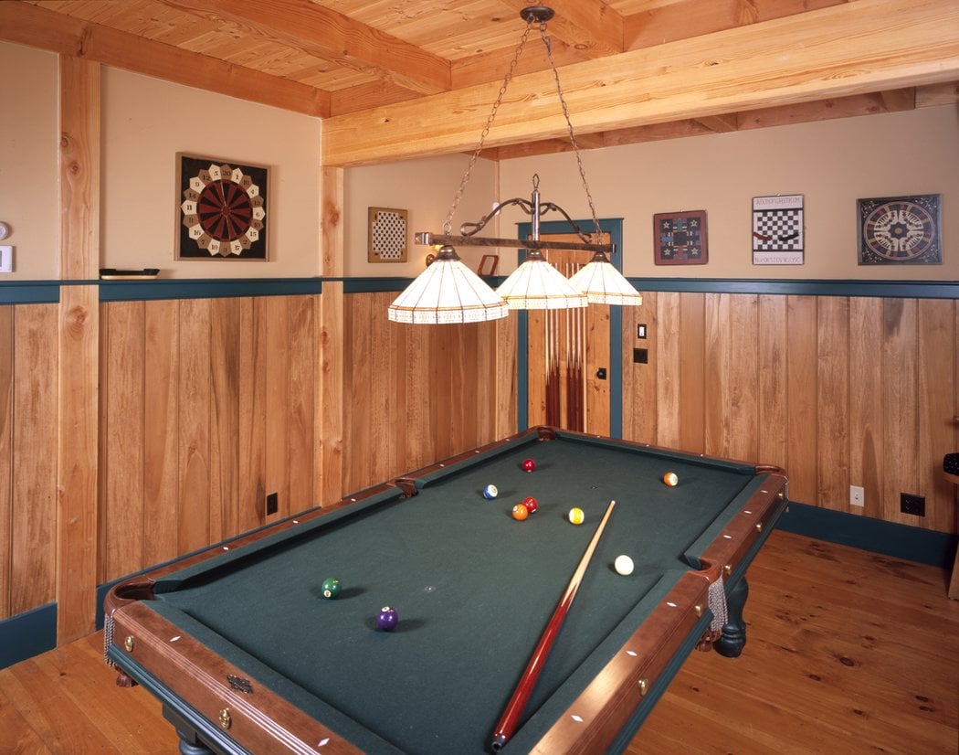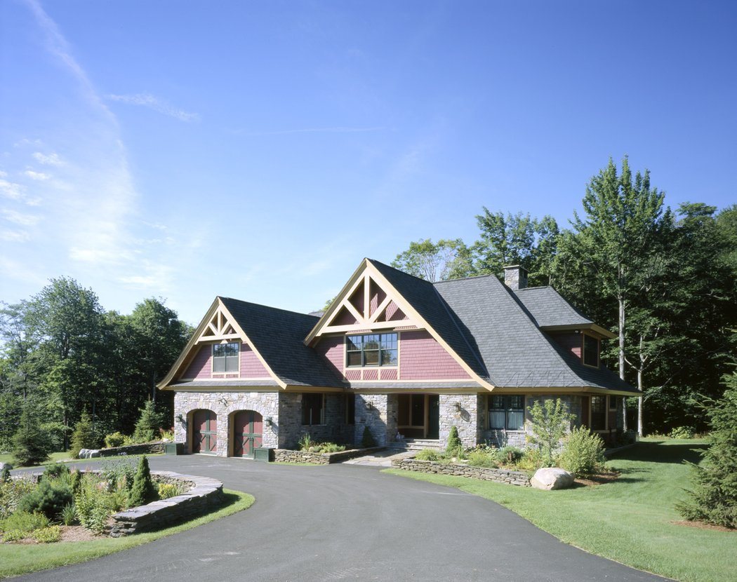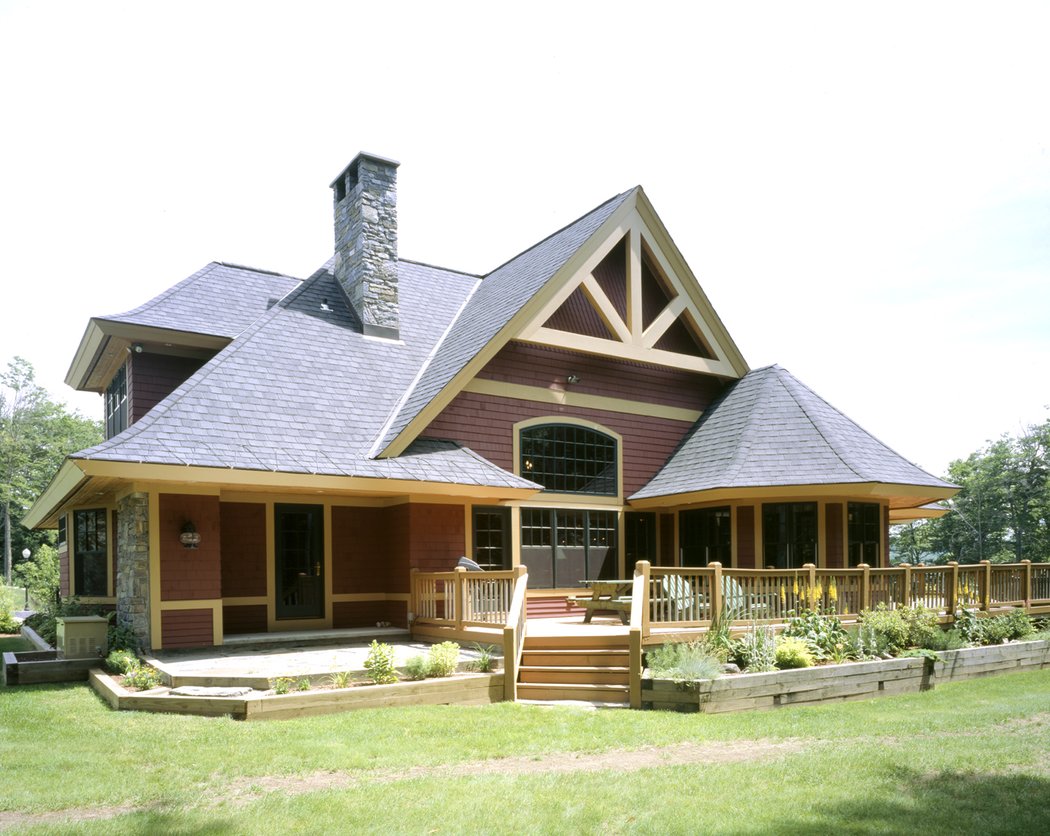 Dynamic roof lines give this home great curb appeal. Trusses with king posts and struts on the front facade of this gracious home hint at the post and beam structure that is exposed on the interior. Once again this design emphasizes both work and play with a study and playroom as well as 3 bedrooms and plenty of storage on the second level. A master bedroom wing is located on the first floor along with the kitchen, living, dining, octagonal breakfast nook and pool room. Most designs can be adapted to add or remove walkout basements, garages, porches, etc., as desired (framing materials by owner/contractor). The garage is not included in the above pricing.