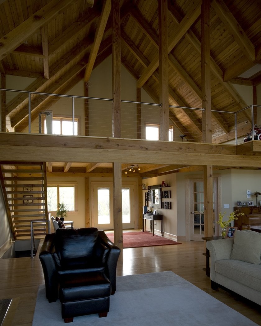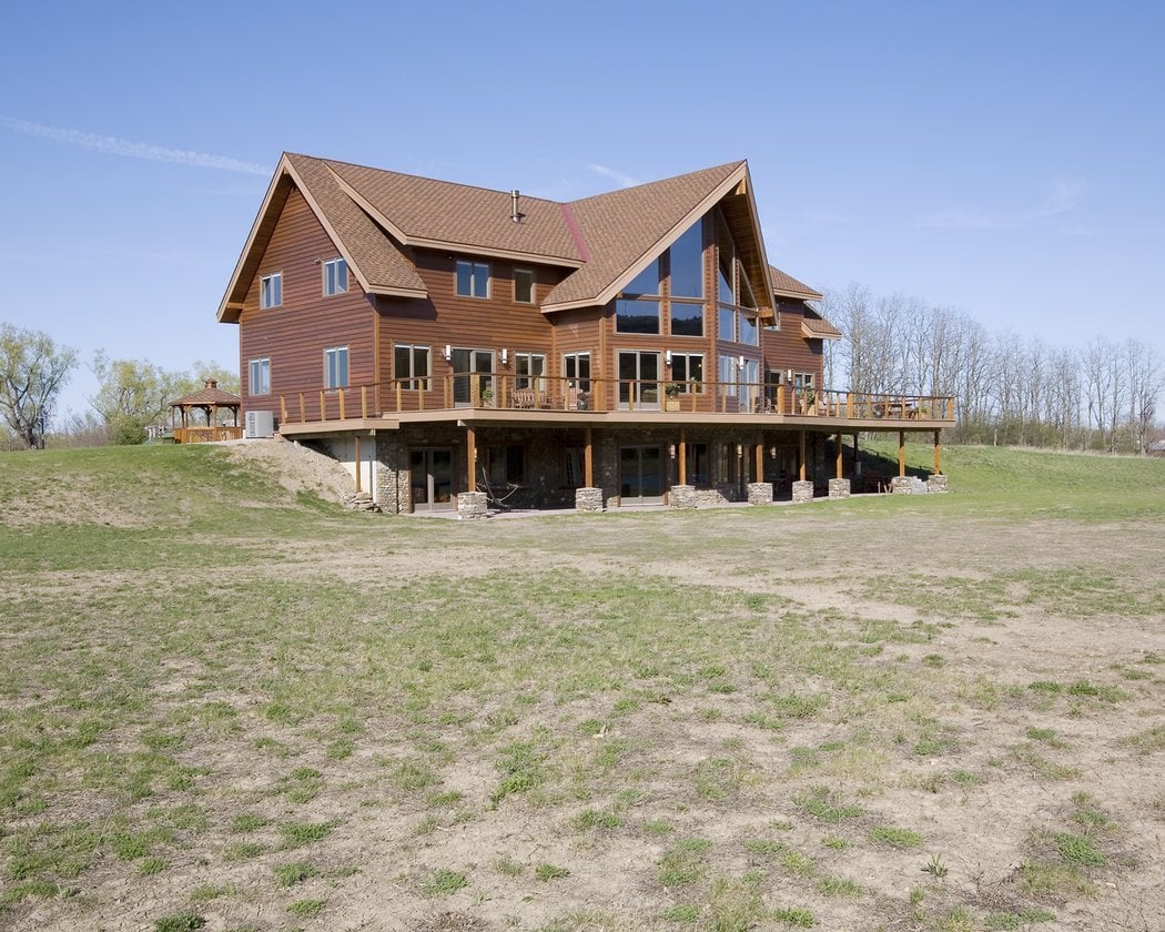 This custom home contains over 4,600 sq. ft. of living space including four bedrooms, a project room, office, first floor master suite and an open loft space. The daylight/walkout basement adds living space and includes an additional, fifth bedroom, family room, bath, exercise room, and workshop. The garage has space for over three vehicles and includes an additional 1,000 sq. ft. of storage in the upper level. Most designs can be adapted to add or remove walkout basements, garages, porches, etc., as desired (framing materials by owner/contractor). The 2377 walkout level (daylight basement), garage and 179 connector are not included in the pricing.