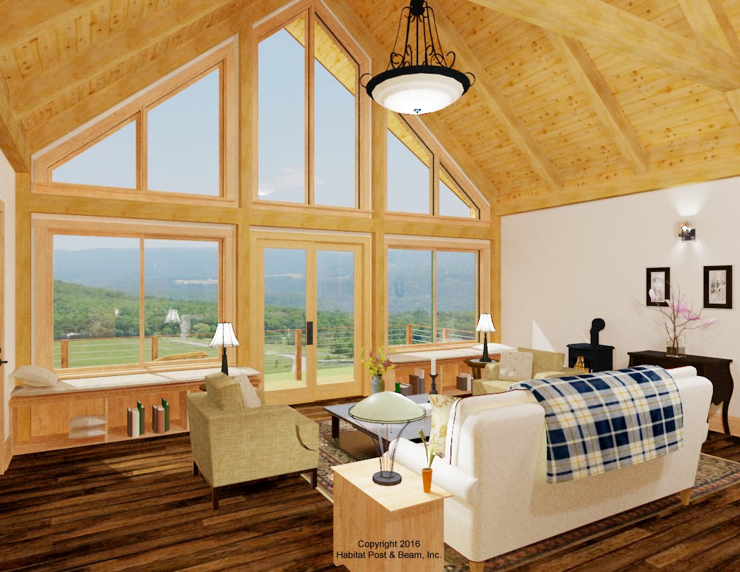 The lower package price assumes more drywall finishes, while the upper price assumes more exposed timbers and wood ceiling finishes. Select the wall system, mid-floor system, and roof system(s) you would like for your project based on aesthetics, budget, and practicality. Our package price can be reduced by removing any of the exterior finish materials that we typically supply (siding/ trim, roof shingles, windows/doors). Note that when shipping outside the northeast almost all packages have those items removed, as shipping them long distances doesn't usually make sense.