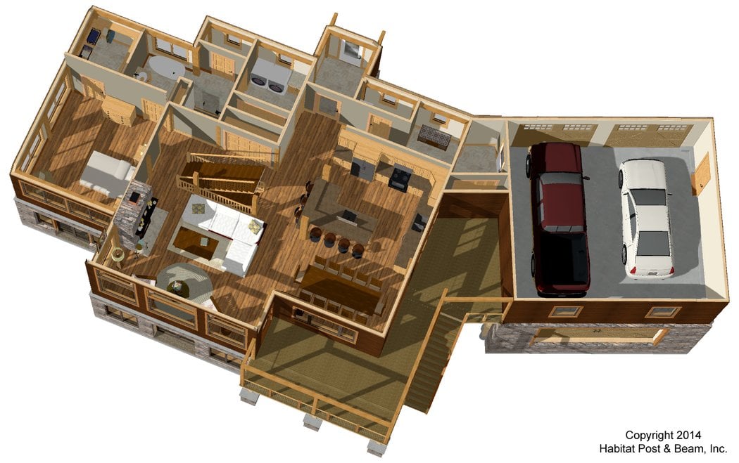 This generous-sized home’s main level is about 1700 sq. ft. and has a large great room, mud room, laundry, entry, kitchen, and a dining area that looks out to a covered porch. The opposite side of the main level is the master bedroom suite. The 1400 upper level is a private bedroom and bath, a storage area, and features loft views down onto the living space below. The 1700 lower walkout level has two more bedrooms and a bath, a game room, and more utility/storage space. The attached two-car garage has office space above and additional parking below. The walkout level (daylight basement), garage, and 56 connector are not included in the above pricing.