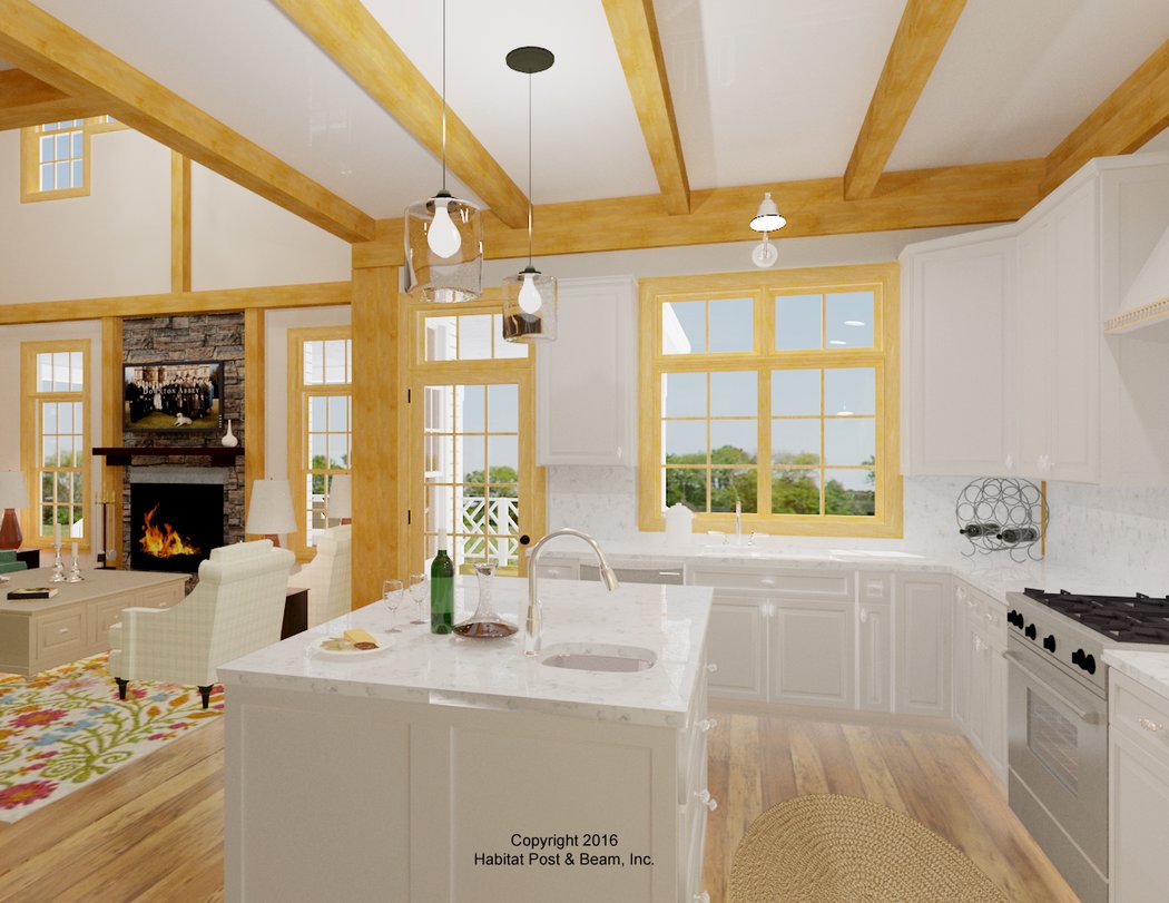This pretty Greek Revival-style home will be built in northern Maryland. The main level of about 1980 sq. ft. has a large, beamed cathedral ceiling entryway in the front center, a master bedroom suite to the left side, and a laundry/bath/mudroom area on the right. Toward the back is the open kitchen/dining/living area with a beamed cathedral ceiling over the living room. A multi-use room currently designed as an office/study/spare bedroom is located to the rear and has a private exit to the rear porch. Upstairs (1000 sq. ft.) houses two additional bedrooms with private baths, and an open, central exercise room that looks down onto the living and entry areas below. The 1805 basement level (not included) with outdoor bulkhead access is currently designed for storage/utilities.