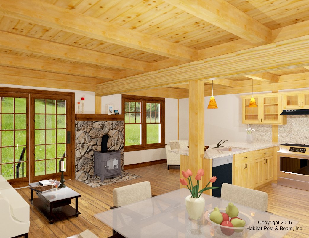 The lower package price assumes more drywall finishes, while the upper price assumes more exposed timbers and wood ceiling finishes. Select the wall system, mid-floor system, and roof system(s) you would like for your project based on aesthetics, budget, and practicality. Our package price can be reduced by removing any of the exterior finish materials that we typically supply (siding/ trim, roof shingles, windows/doors). Note that when shipping outside the northeast almost all packages have those items removed, as shipping them long distances doesn't usually make sense.