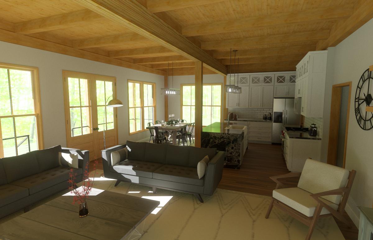 The lower package price assumes more drywall finishes, while the upper price assumes more exposed timbers and wood ceiling finishes. Select the wall system, mid-floor system, and roof system(s) you would like for your project based on aesthetics, budget, and practicality. Our package price can be reduced by removing any of the exterior finish materials that we typically supply (siding/ trim, roof shingles, windows/doors). Note that when shipping outside the northeast almost all packages have those items removed, as shipping them long distances doesn't usually make sense.