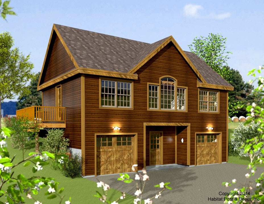 This is an 864 square foot, single-level home with an optional drive-under garage for a sloping site. The main level has airy cathedral ceilings and room for two bedrooms, and the optional lower level (not included in the Habitat Package) could be used as an additional entry with a mud room, along with space to accommodate two garage bays. Most designs can be adapted to add or remove walkout basements, garages, porches, etc., as desired (framing materials by owner/contractor).