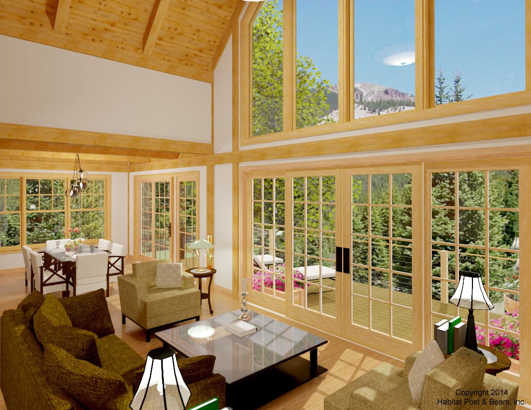 The lower package price assumes more drywall finishes, while the upper price assumes more exposed timbers and wood ceiling finishes. Select the wall system, mid-floor system, and roof system(s) you would like for your project based on aesthetics, budget, and practicality. Our package price can be reduced by removing any of the exterior finish materials that we typically supply (siding/ trim, roof shingles, windows/doors). Note that when shipping outside the northeast almost all packages have those items removed, as shipping them long distances doesn't usually make sense.