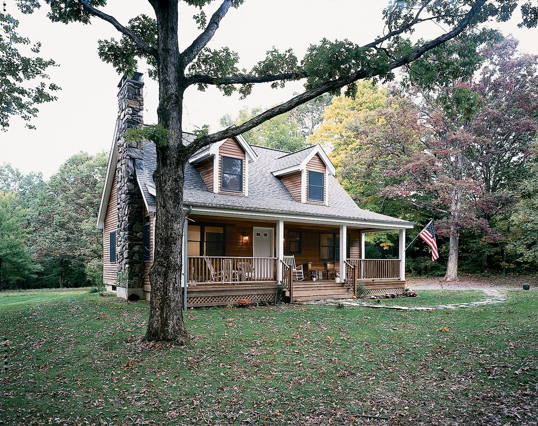 The low profile of this cape, with its welcoming front porch and dormers, distinguishes the Deerfield Cape from the historic Nantucket Cape-style homes.
