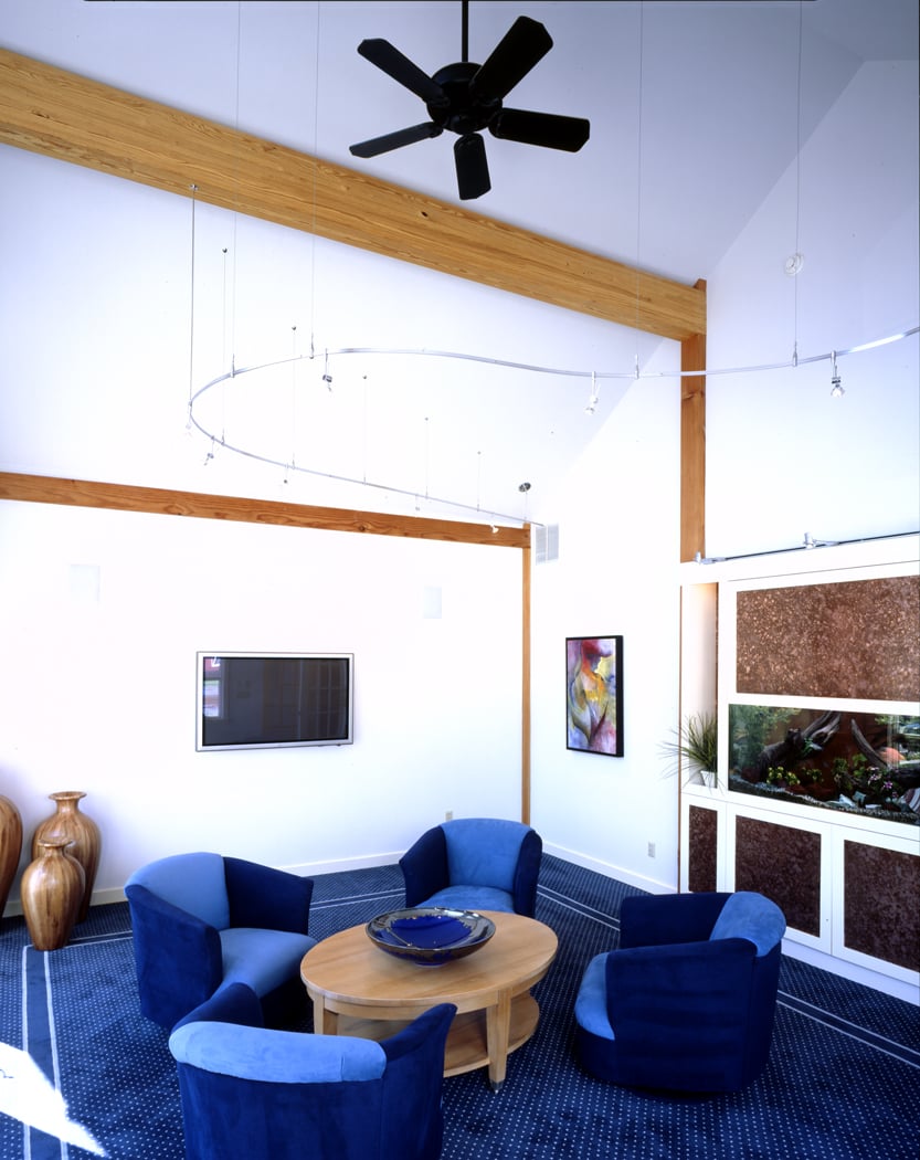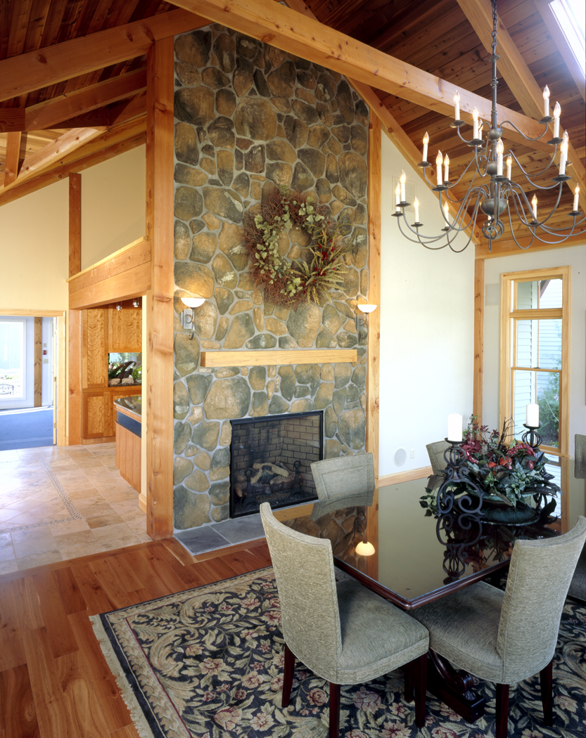 Our design showroom, The Habitat Station, inspired this version of a Lodge for those looking for a small and efficient design. This design easily can include more bedrooms if you have a sloping building lot that can accommodate a daylight basement (walk-out). Each wing could contain an additional bedroom, and the central area could be used as an office, media room or playroom.